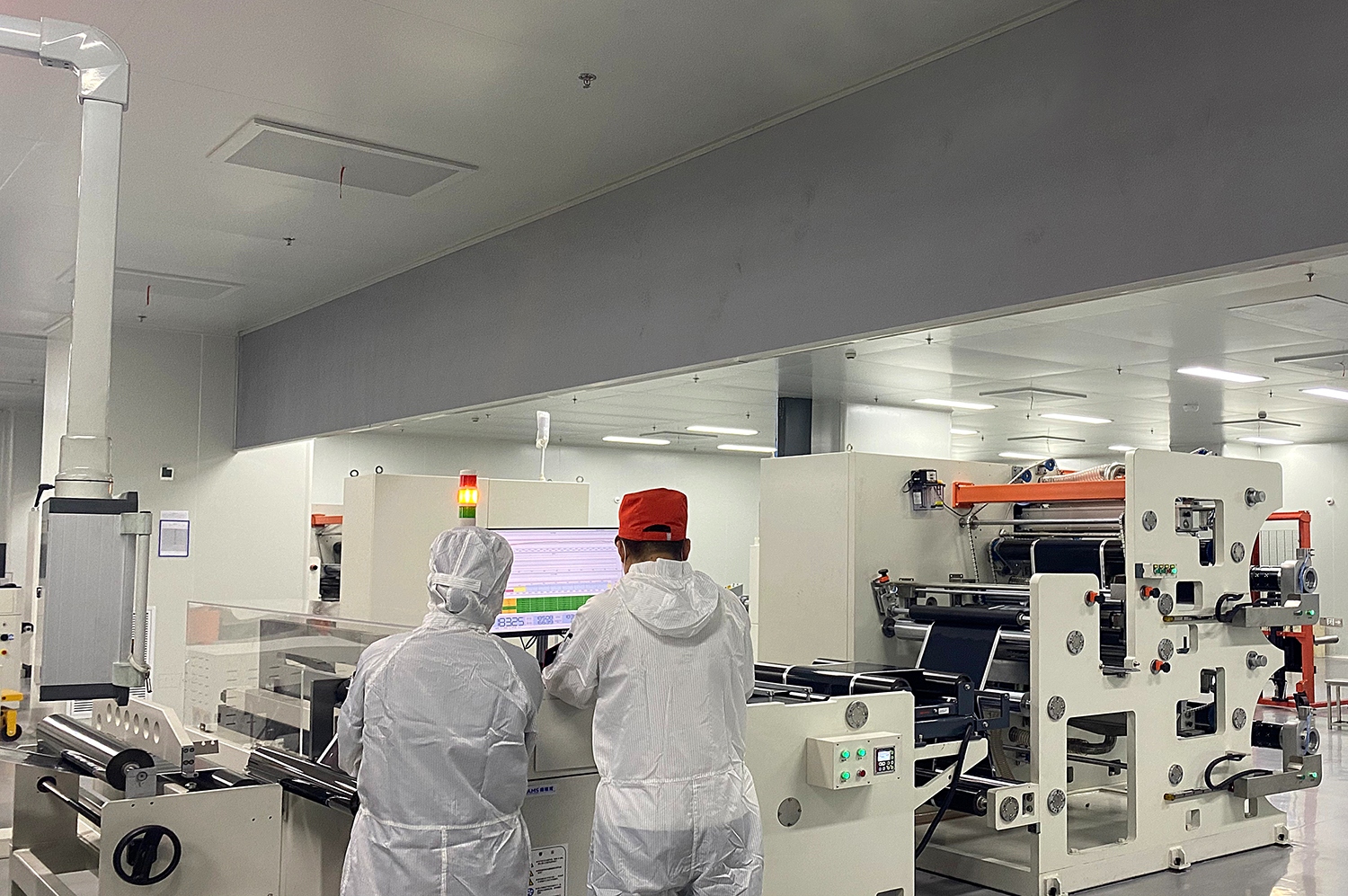 南都电源引进国际先进水平的高精度自动化设备,采用折返式高速涂布模式,将浆料均匀涂覆在极薄的铜箔、铝箔上,同时在线配备β-ray/X-ray扫描仪和高精度相机,实时监控单位面积涂布重量及尺寸,确保了电芯超高的一致性。